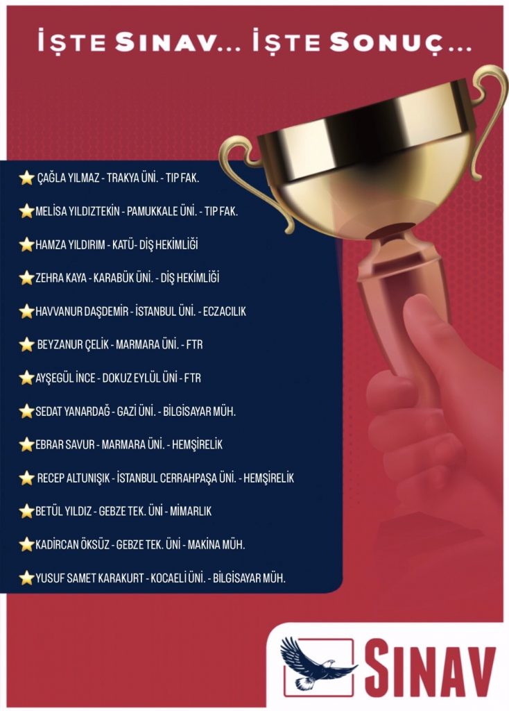 Sınav Eğitim Kuurmlarının birinci ilkesi: Her öğrencisini büyük bir sorumluluk ve titizlik çerçevesinde takip etmektir. Bunun için Sınav Eğitim Kurumlarında, tüm öğrencilerin akademik başarıysıyla yakından ilgilenir ve veliler de bu gelişmelerden düzelinli olarak haberdar edilir. Öğrenci hakkında hiçbir şekilde ” temeli zayıf yada dinlemiyor, anlamıyor ” gibi bahaneler üretilerek sorumluluktan kaçınılmaz.